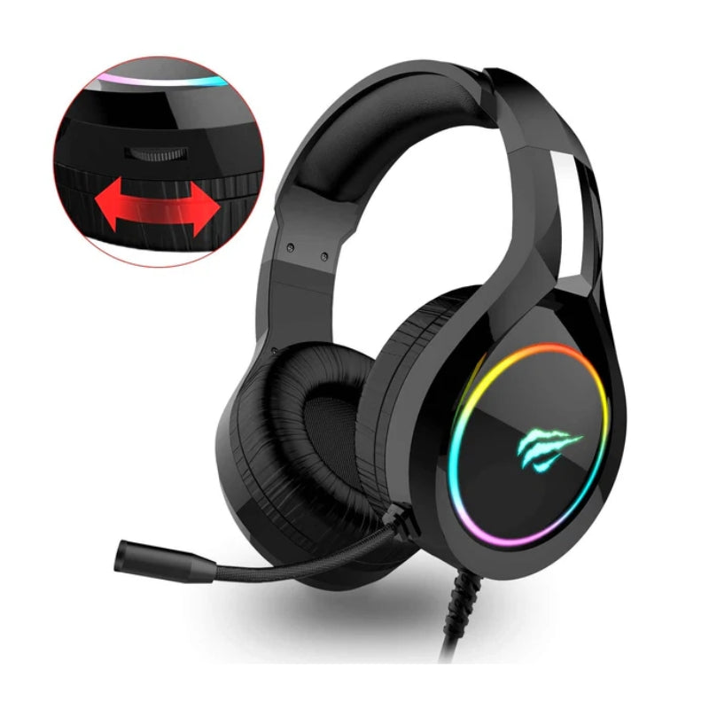 هافيت - سماعة رأس رياضية للألعاب RBG باللون الأسود