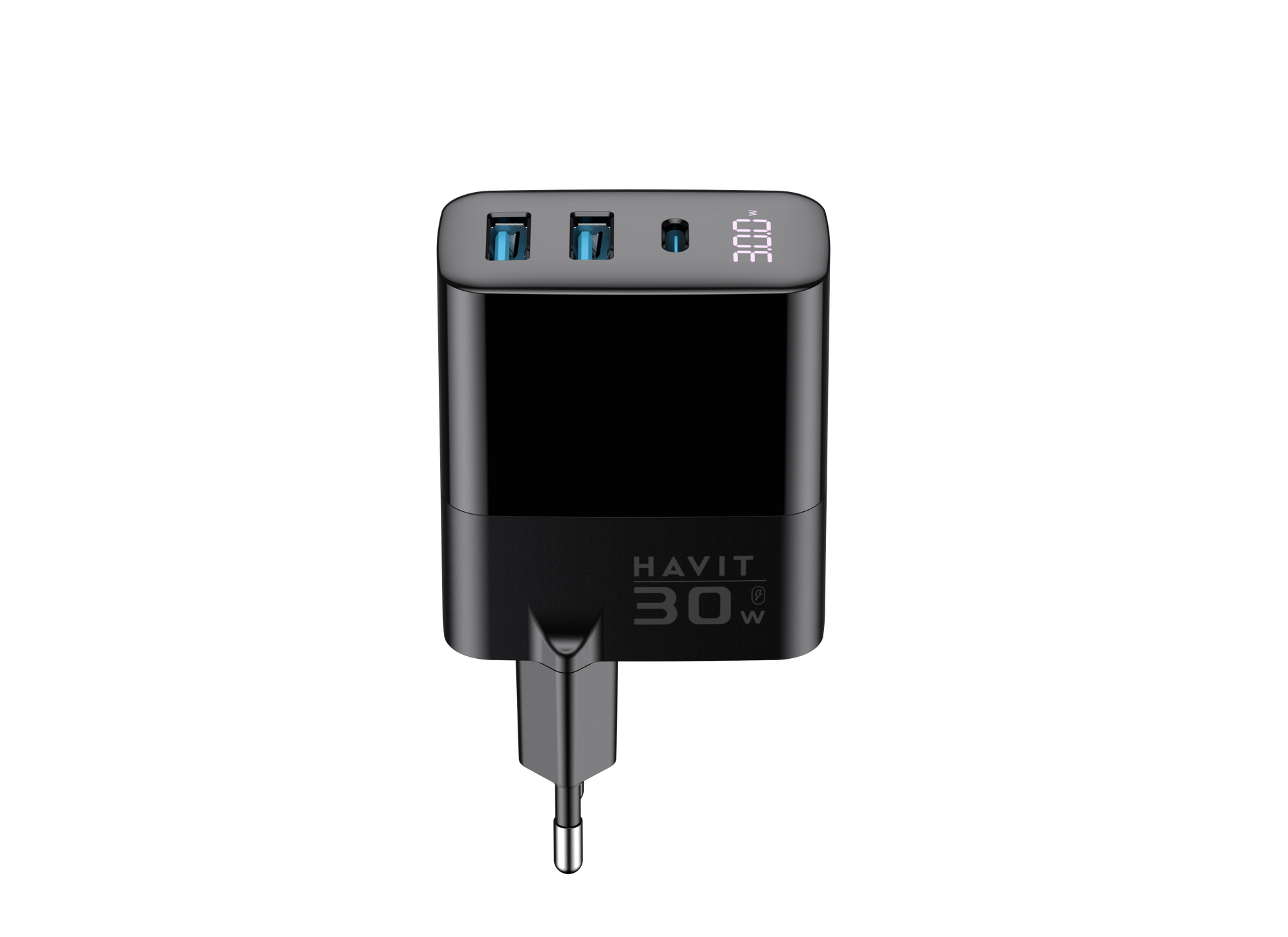 هافيت UCLE001 الاتحاد الأوروبي LED شاحن GaN 30 واط 2A1C منافذ أسود