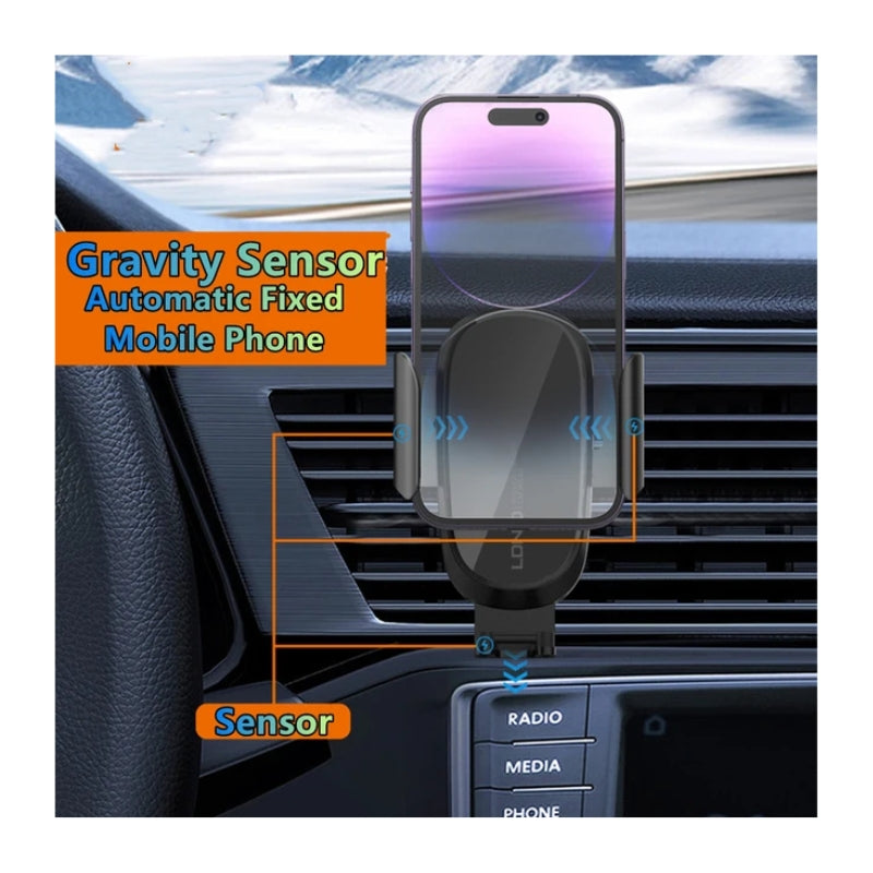هذا الحامل المتطور لا يقتصر على تثبيت هاتفك أثناء القيادة بل يحتوي أيضًا على شاحن لاسلكي مدمج، مما يتيح لك شحن هاتفك بكل سهولة وأمان أثناء التنقل.