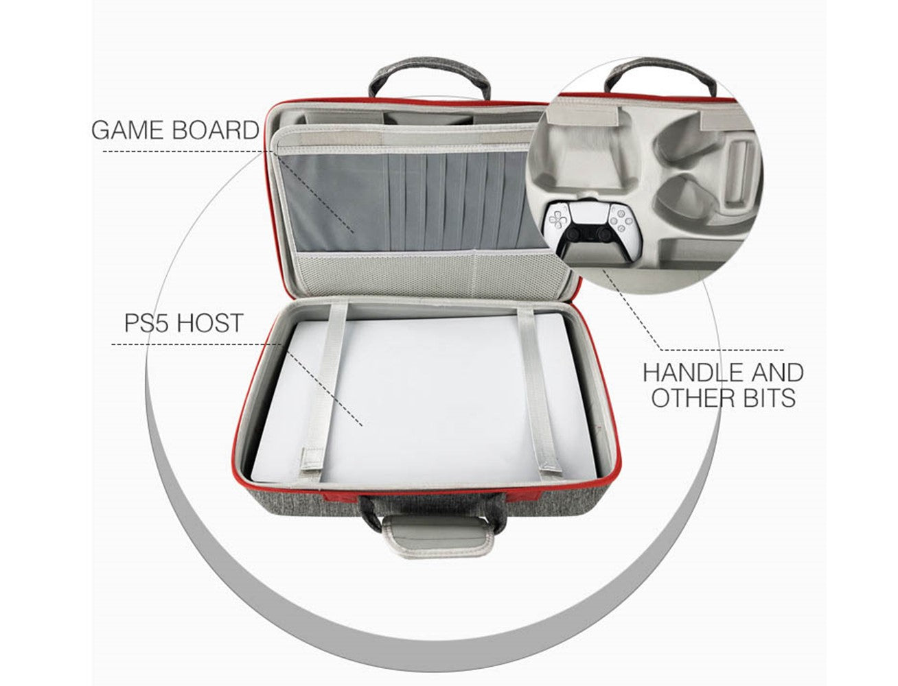 - EVA المواد قذيفة الصلبة يمكن أن تحمي PS5 الخاص بك أفضل من النايلون العادي، للماء والصدمات.