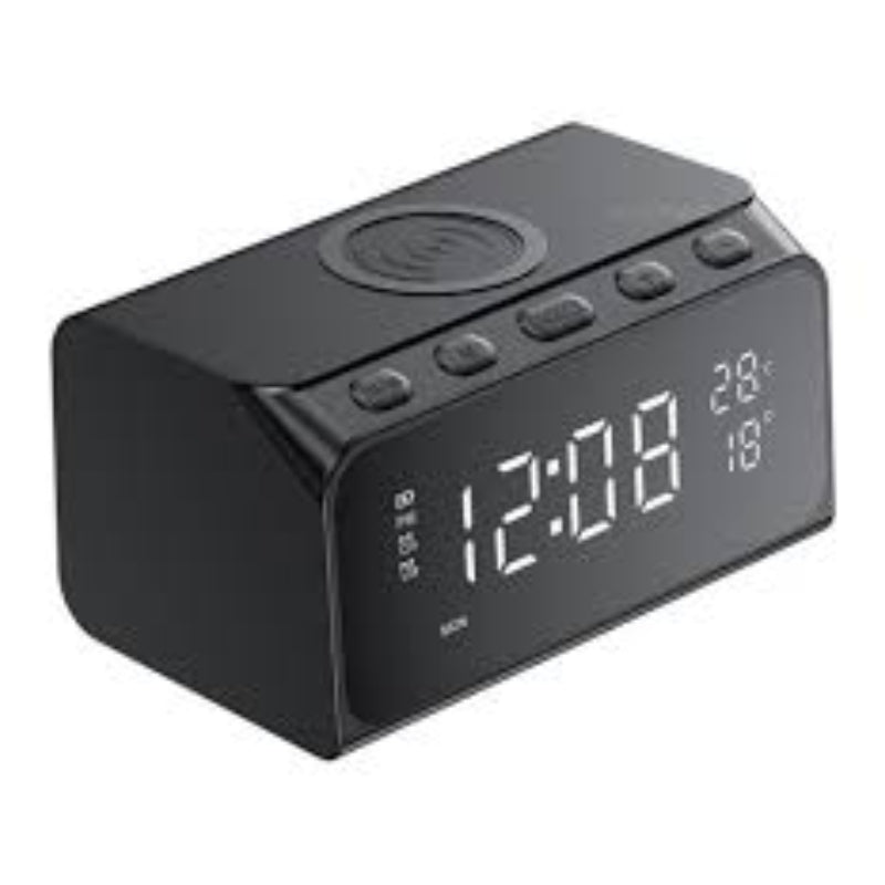 شاحن هافيت W3041 اللاسلكي مع ساعة، باللون الأسود