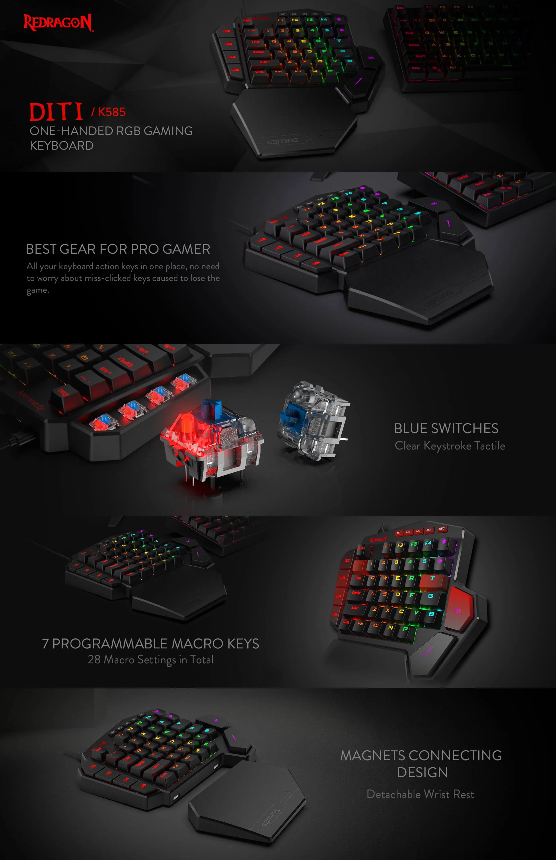 Redragon K585 DITI One-Handed RGB Mechanical كيبورد ميكانيكي ضوئي